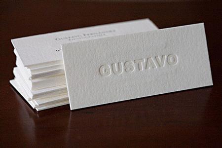 凹凸壓印習(xí)稱“凹凸印刷”、“軋凹凸”或“壓凸印”,該工藝**的特色是不用油墨,而是將圖案雕刻在金屬版上,或凹版或凸版,像打鋼印一樣,給凹凸版以機(jī)械壓力,單純利用壓力在已經(jīng)印好的彩色印刷品或空白的紙上壓出凹凸圖形和花紋。凹凸名片的優(yōu)點是質(zhì)感強(qiáng)烈,有浮雕的效果。